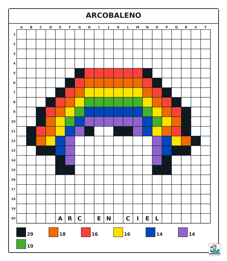 Arc-en-ciel Pixel Art 20×20